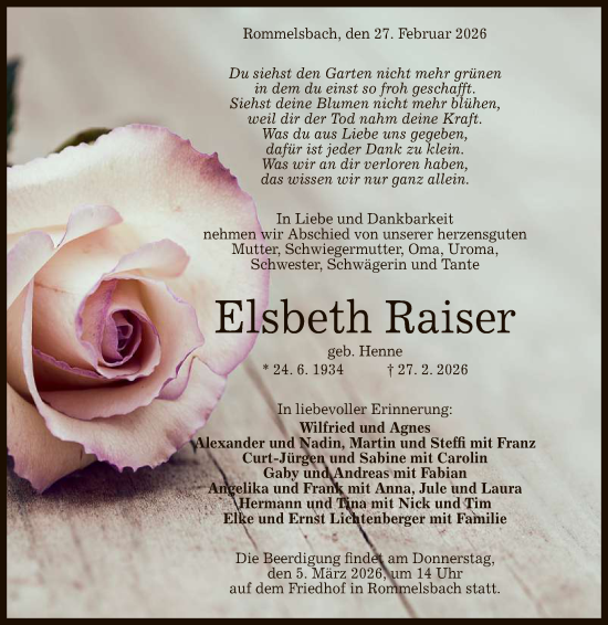 Zur FotobuchsoftwareElsbeth Raiser geb. Henne